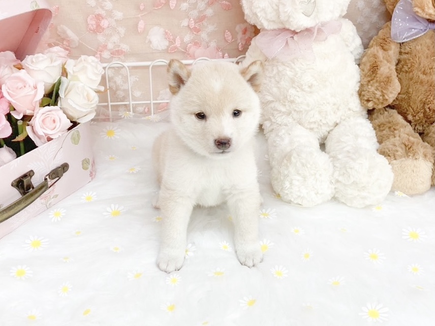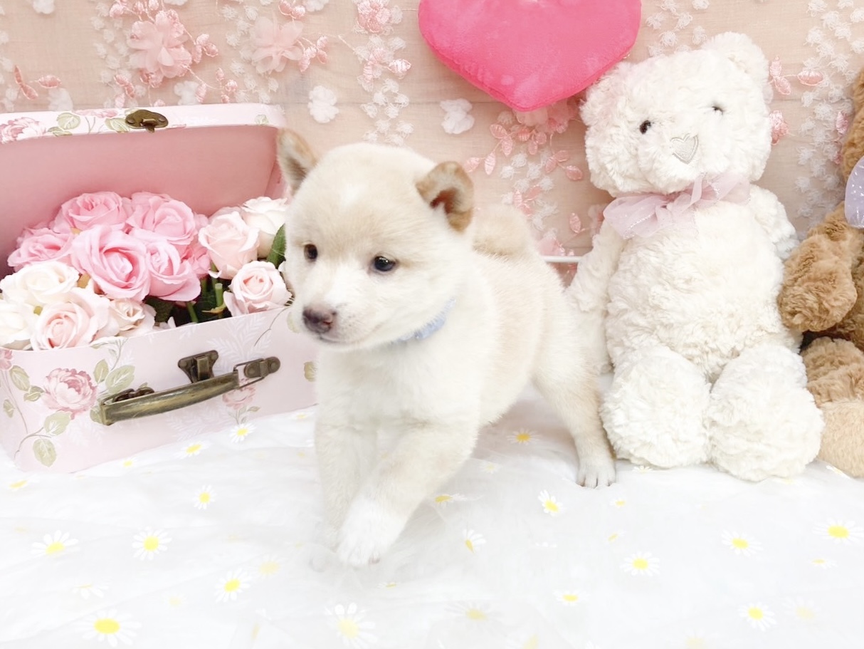 白の被毛が美しい豆柴の男の子が新しいご家族を待っています✨