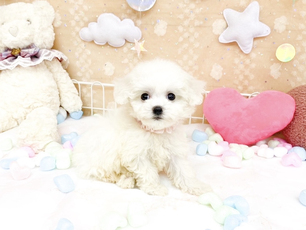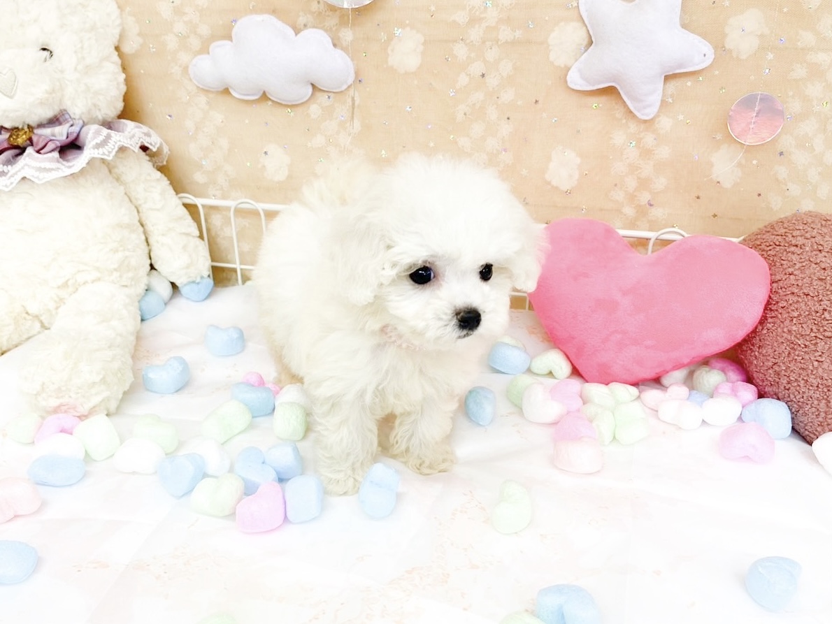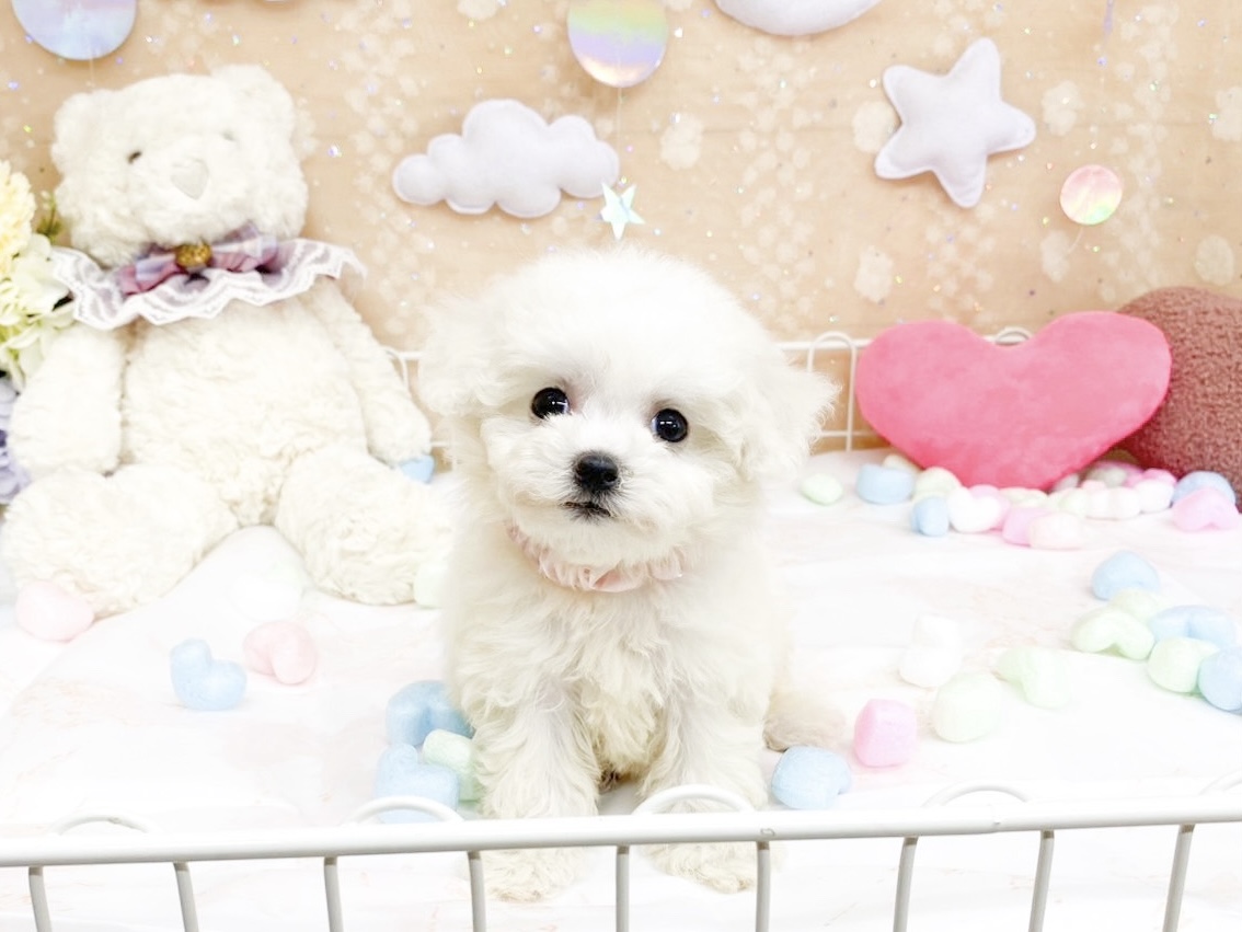兄妹の中で一番ちいさな、ふわふわのビション・フリーゼの女の子。