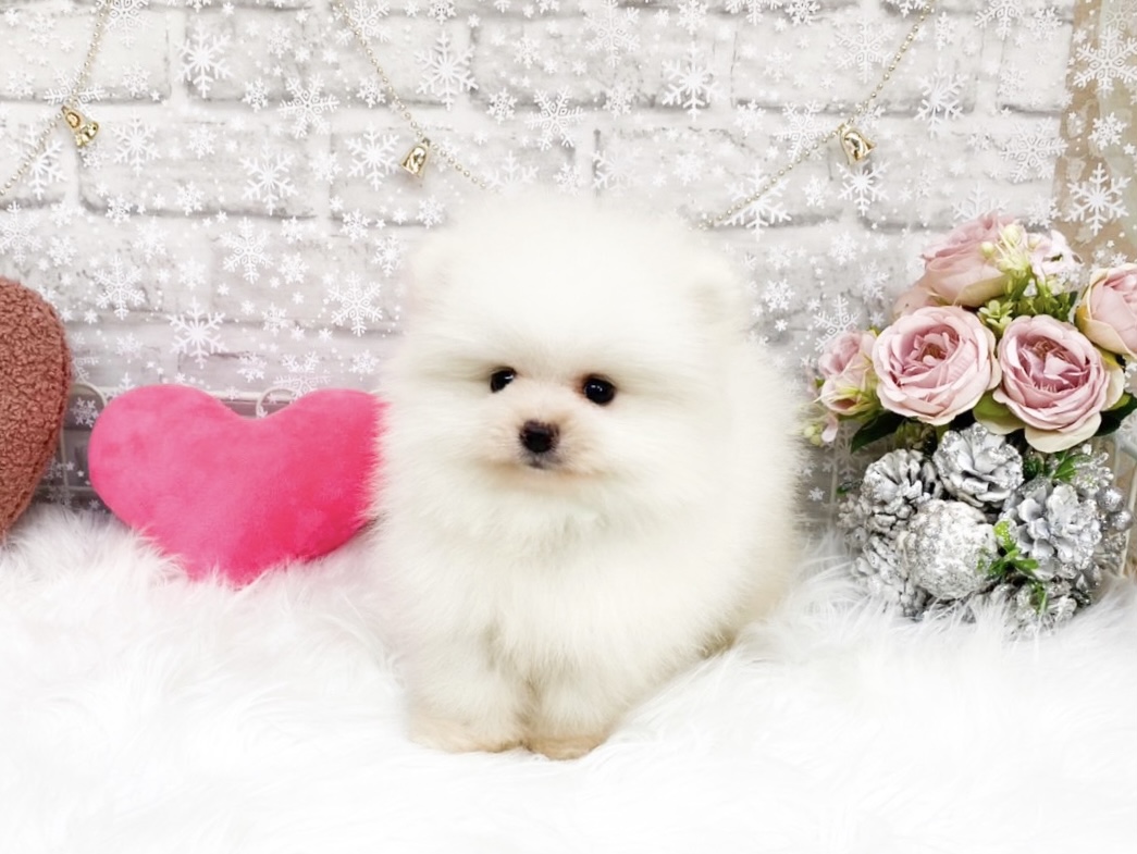 まるで小さな雪の妖精のように、ふわふわの純白コートが魅力的なポメラニアンの女の子です💕