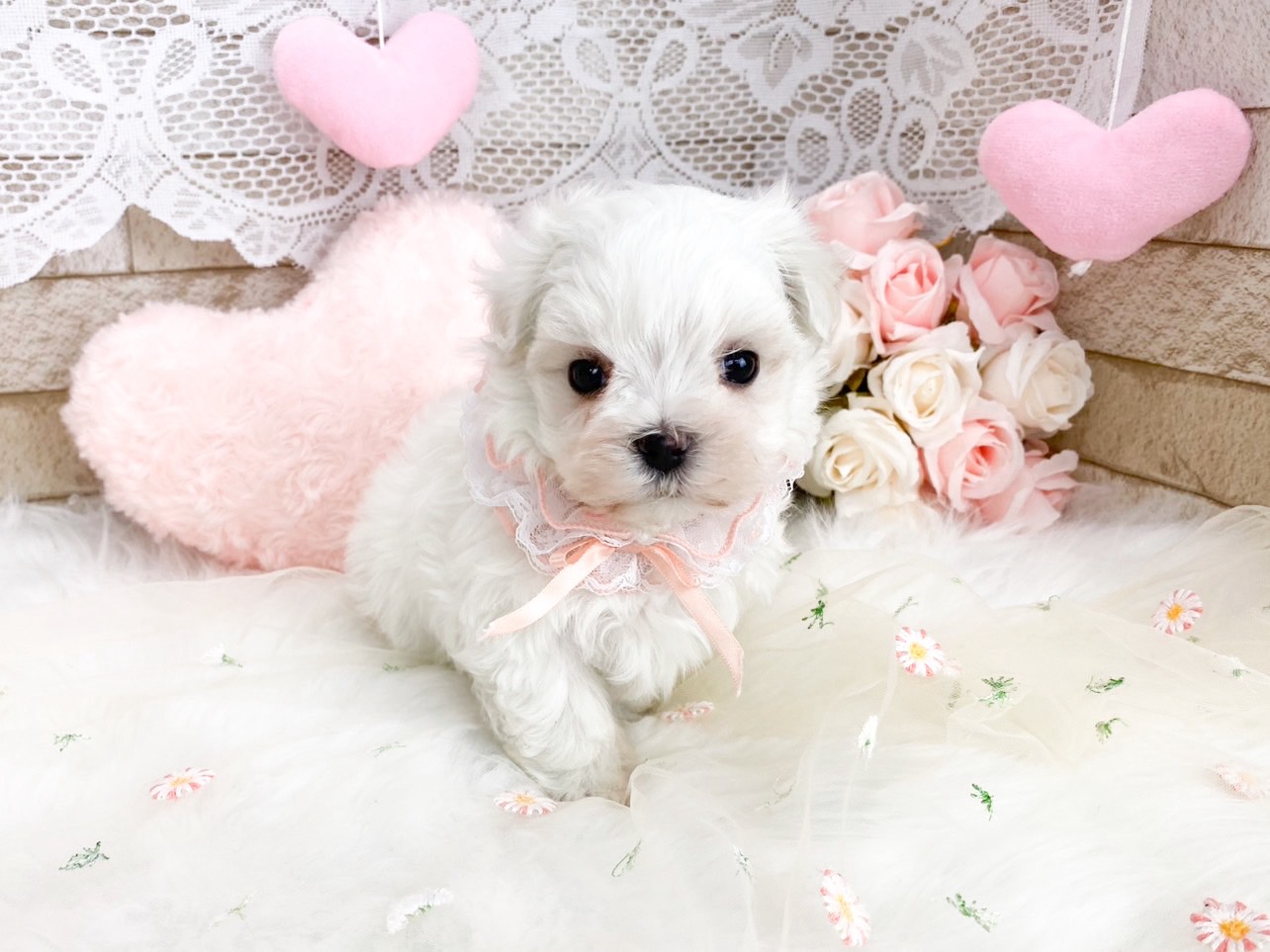 瞳が大きくて愛らしい笑顔が魅力的な、マルチーズの女の子です!