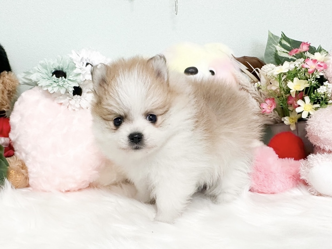 大人しく優しい性格のパーティーカラーのポメラニアンの女の子💕