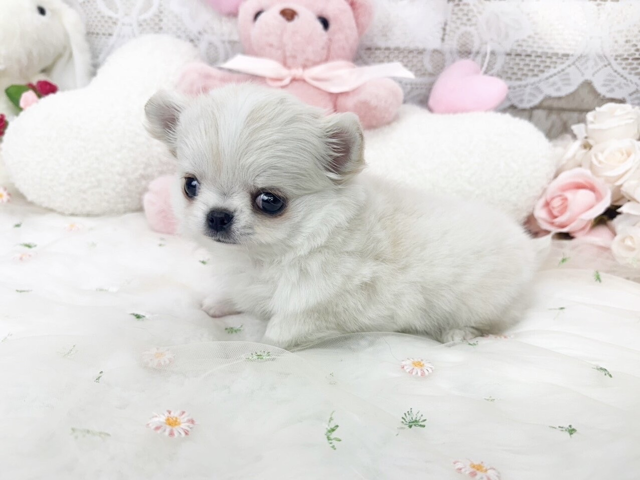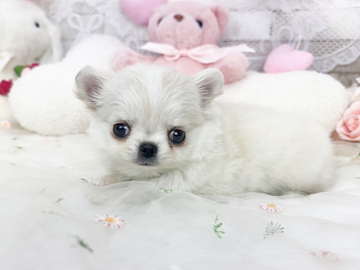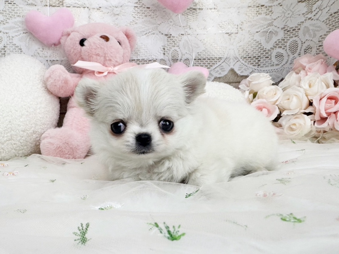 ふわっと優しい色合いのクリーム&ホワイトがとっても可愛い、チワワの女の子🥰