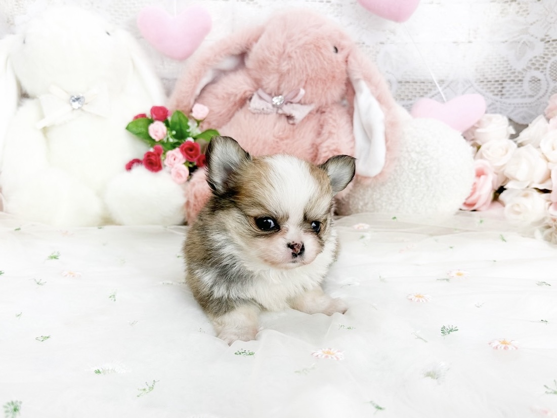 おっとりとした穏やかな性格が魅力の、レッド&ホワイトの毛色が美しいチワワの女の子💕